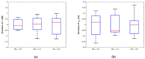 Using the test data of the U1C1 state, the ASE stability evaluation results at different Mach numbers (0.5, 1.5, and 2.0) are determined. The mean values of the stability margins are listed in Table 3. Box diagrams of the deviation between the results of all the test data and the mean values are shown in Figure 26. Compared with the theoretical results, the results of the proposed method are accurate, and the deviation of the minimum gain margins relative to the mean values are no more than 1.3 dB.