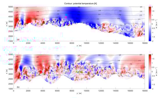 PALM adopts a spatial scale separation approach developed by Schumann [] to implicitly filter the variables in the governing equations. When applying the spatial filter to Equation (25), the filtered nolinear advection term  can be written as