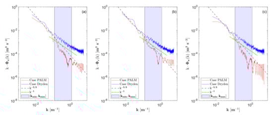 Most statistical methods for simulating atmospheric turbulence can be summarized as a random procedure whereby a noise process with specified power spectral densities is filtered to obtain an output with certain statistical properties. This approach is also known as Monte Carlo turbulence simulation. The two most popular forms, suggested by von Kármán in [] and Dryden in [], are normally used to define the power spectral densities of the three turbulence velocity components. The spectral shapes suggested by Dryden can be exactly matched using linear filters and were more convenient for turbulence modelling in the fifties, while it was confirmed that von Kármán’s form was the most accurate model for representing isotropic turbulence. According to the comparison conducted in [] by using recorded gust velocity and meteorological data from flight tests, the differences between the two proposed approaches were quite small in the frequency range of interest in most flight simulation studies. Although Gaussian turbulence models are based on the assumption that turbulence is isotropic, homogeneous and frozen (refer to frozen turbulence hypothesis suggested by Taylor in []), the linearly filtered Gaussian white noise method was still commonly used in the applications in the fifties.