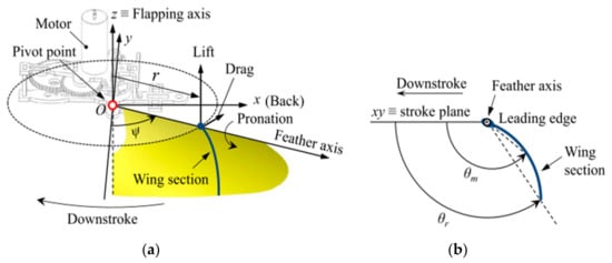 - Sane, S.P.; Dickinson, M.H. The Aerodynamic Effects of Wing Rotation and a Revised Quasi-Steady Model of Flapping Flight. J. Exp. Biol. 2002, 205, 1087–1096. [Google Scholar] [CrossRef] [PubMed]