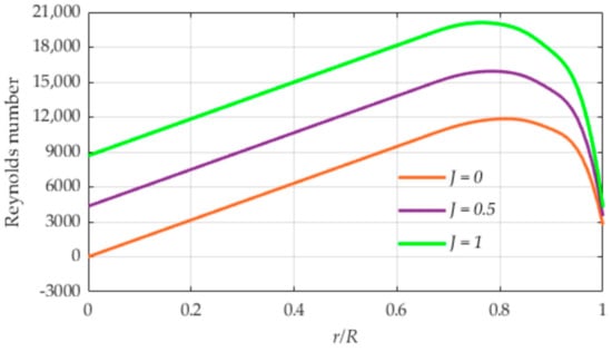 Span-wise distribution of the Reynolds number for the three investigated inflow speeds.