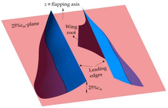 - Lehmann, F.-O.; Sane, S.P.; Dickinson, M. The Aerodynamic Effects of Wing–Wing Interaction in Flapping Insect Wings. J. Exp. Biol. 2005, 208, 3075–3092. [Google Scholar] [CrossRef] [Green Version]