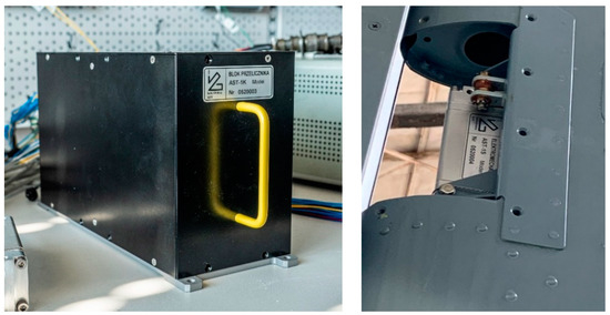 Using the Bode plot forming method, the controllers were tuned with linearized models around average level cruise flight velocity, altitude operating points and airplane weight and balance typical for a training mission. First, the operating points were computed using Matlab Model Trimming tools. Then, the model was also automatically linearized at that point in the Model Linearizer tool generating the state-space form of the models. Next, controllers’ coefficients tuning was done graphically using Bode plot tools. Then, those tuned coefficients values were returned with a nonlinear airplane model in the real-time simulations. The developed models were verified after the hardware parts were manufactured: stabilization system computer and trim tab servomechanisms (Figure 7). For that purpose, the hardware in the loop (HIL) simulations [10,11] were performed on a stand designed for this kind of research (Figure 8). Before installation on aircraft, a pilot in the loop (PIL) simulations performed at that stand with mounted stabilization system’s hardware allowed to fine-tune the system performance, using the launch aircraft pilot’s opinions.