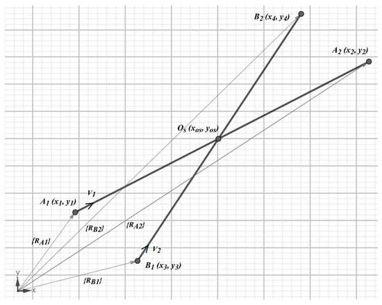 - Weisstein, E.W. Line-Line Intersection. 2019. Available online: https://mathworld.wolfram.com/Line-LineIntersection.html (accessed on 16 March 2021).