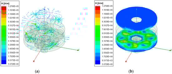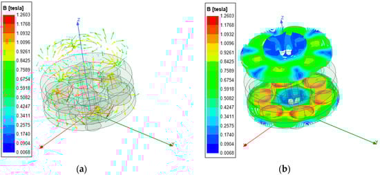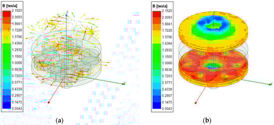 Static magnetic flux density distribution of the rotor disks: (a) Vector distribution; (b) Field distribution.