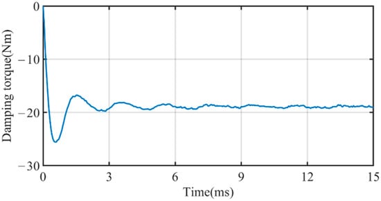 For permanent magnet electromagnetic dampers, the magnetoresistance increases as the air gap width increases, while the flux is the ratio of the magneto motive force to the magnetoresistance. The flux decreases with increasing magnetoresistance and constant magneto motive force, producing a flux density in the magnetic saturation region, which decreases more slowly, and then in the non-saturation region, which decreases rapidly. From Figure 20, it can be seen that during the reduction of the air gap width from 3.5 mm to 0.2 mm, the damping coefficient of shimmy reduction gradually increases from 17.55 Nms/rad to 49.79 Nms/rad, while the change of the damping torque of shimmy reduction slows down during the continued reduction from 1.5 mm, indicating that the induced magnetic field on the rotor disks has started to enter the saturation state. Therefore, within a certain range, the magnetic flux density can be increased by reducing the air gap to increase the output damping torque of the electromagnetic damper, but the air gap should not be too small considering the influence of mechanical processing precision and material thermal expansion and contraction.