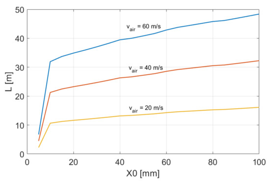 Test bench capability to reproduce periodical runway irregularities: minimum pitch (L) vs. waving amplitude (X0).