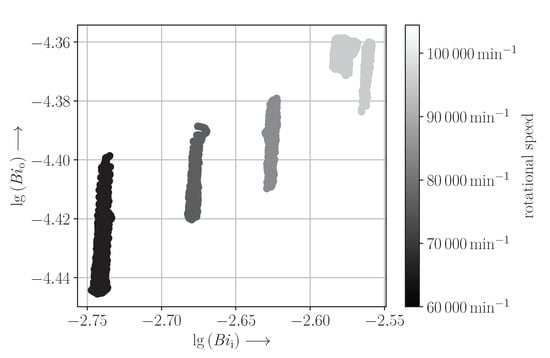 , and  are kept constant during the step changes. They are varied for the individual step changes such that the operating ranges of the compressor and the turbine of the investigated engine are well covered by the simulation. Consequently, the Biot numbers are chosen to be distributed evenly in the logarithm to base 10 (lg) space,