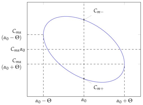 with the pitching angle and the pitch rate . As only low-amplitude oscillations () are considered, the coefficients and are regarded as constant. When plotted over the pitching angle , Equation (16) describes an elliptic shape, as shown in Figure 8.