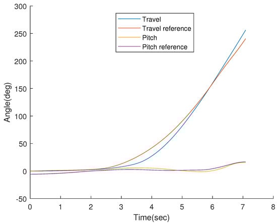 Tracking of pitch () and travel () angles of a combined primitive.