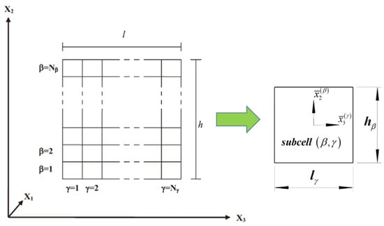 where h and l represent the height and length of the RUC, hβ and lγ represent the height and length of the subcell (βγ), as shown in Figure 2.