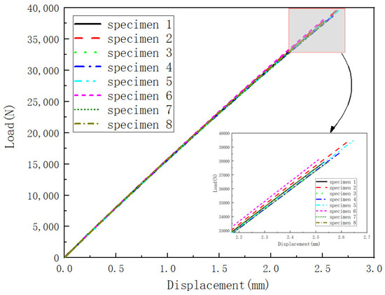 The force-displacement curve of eight specimens.