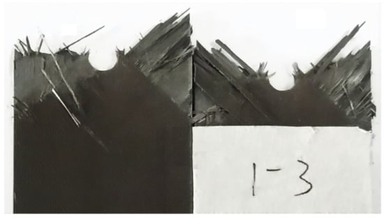 The average failure load of all specimens is 38.34 kN, and the dispersion coefficient is 2.13%. It can be seen from the displacement versus load curve that all the specimens are obviously brittle before the ultimate failure determined by the tensile strength of 0° layer onset. The photograph of the failed specimen is present in Figure 9, it can be observed that the catastrophic failures are concentrated around the open hole which causes the stress concentrations and finally span the width of the specimen, the failure modes of the specimen are mainly as follows: tensile fracture of fiber for 0° layer and tensile fracture of the matrix for ±45° layer.