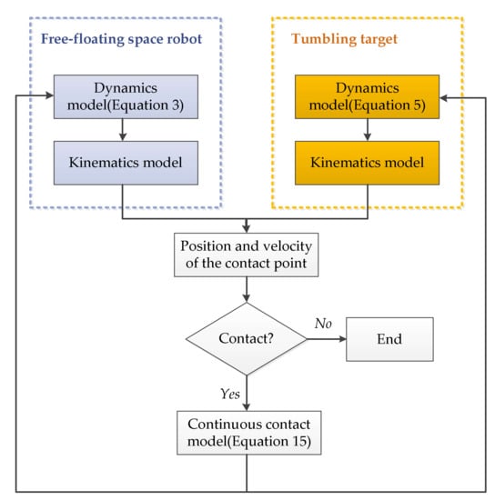 - She, Y.; Li, S.; Hu, J. Contact Dynamics and Relative Motion Estimation of Non-cooperative Target with Unilateral Contact Constraint. Aerosp. Sci. Technol. 2020, 98, 105705. [Google Scholar] [CrossRef]