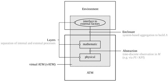 In summary, abstraction involves data aggregation, enclosure involves focusing on a specific system section (and associated system participants), and the layered model connects to external effects. Basically, the vATM is thus formed by the following components:
