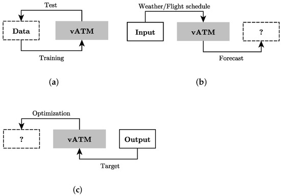 Application components of a vATM. (a) System identification; (b) simulation; (c) control.