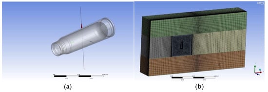 (a) Shell case model and (b) mesh for calculating drag coefficient.