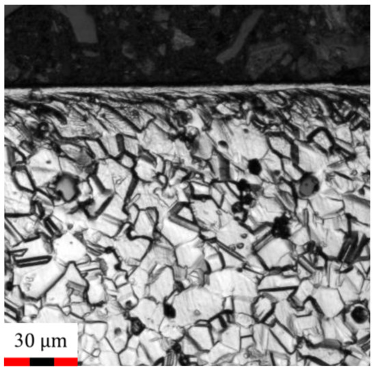 The average grain size can be divided into 30 levels, where G00 represents the coarsest grain (over 508 ) and G14.0 represents the minutest grain (below 2.8 ). Thus, the RS level can be defined on the basis of the relationship mapping between RS and grain size. As is shown in Figure 19, the average grain size level of GH4169 after single-pass compression is G6.0~G11.0. The grain size level on the surfaces is G6.0, with the RS over 300 MPa. The grain size level on the center is G10.0 or even smaller, with the RS of 200 MPa~300 MPa. The statistical results show that, in the average grain size range of G7.0~G9.0, the variety of RS is approximately 100 MPa for every 1.0 change in grain size. Based on this conclusion, the RS level can be estimated according to the average grain size level, which is usually set as the standard requirement for forging. According to the residual stress and grain distribution law of the blank, the optimal positions of the part in the blank ought to be arranged close to a quarter of the forging blank to guarantee low residual stresses and a homogeneous and refined grain.