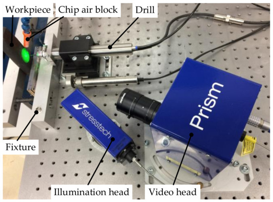 A measurement method of RS with high accuracy and efficiency is essential in experimental investigations. The blank initial residual stress measuring range is required to be more than 10 mm. The layer-stripping method is a traditional method to measure the residual stress profile of the blank. The traditional layer-stripping method to measure the residual stress needs to remove a layer of material and attach a strain gauge, which takes around 1.5 h. Moreover, the traditional layer-stripping method is inevitably limited by material removal, including the low precision and resolution caused by excessive removal thickness, and the interferences of stripping-induced RS when the removal thickness is small. The traditional layer-stripping method obtains the residual stress through the strain gauge, and the measurement accuracy of the residual stress depends on the measurement accuracy of the strain gauge, which is generally around 50 MPa [27,28]. The stress state is difficult to precisely describe. The proposed new layer-stripping method combines the PRISM and layer-stripping method. The PRISM (Stresstech Oy, Jyväskylä, Finland) is a specialized piece of equipment for RS measurement combining the laser interference technique and hole drilling method, as pictured in Figure 3. Its maximum measurement depth was 2 mm. The measurement accuracy was 7 MPa. The RS depth profile was measured via incremental drilling. First, a small hole was drilled into the part’s surface, the RS relaxation resulting in a tiny surface deformation. Afterwards, this deformation was measured by electronic speckle pattern interferometry [29,30,31,32]. The proposed new method measures residual stress for around 5–10 min at a time. Furthermore, measuring results will be corrected considering the stress redistribution caused by layer stripping.