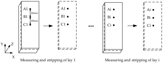 Then, layer 2 will be removed, and the calculated results of and can be used as the known condition. Similarly, the results obtained by PRISM can be corrected successively. It is noted that the new stress balances overlap with the increase in layer-stripping times. For convenience of calculation, Equation (1) can be rewritten as