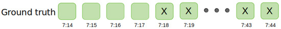 There are three main reasons behind using 30-min intervals. First, to our best knowledge, ATCOs look look at a minimum interval, between fifteen and thirty min, when considering the implementation of ATFM regulations. Second, we want to predict possible ATFM regulations for specific intervals of time (e.g., “Is needed a regulation from 7 a.m. to 10:30 a.m. on 12 September?”), and also for a given entire day (e.g., “What are the regulations required for 12 September?”). Third, we want to identify, as precisely as possible, the moment a regulation shall start and end. Moreover, as we will see in