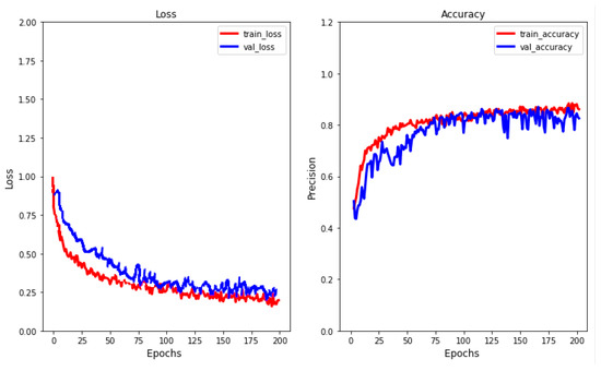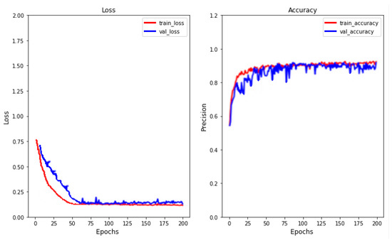 As it can be seen, the model does not present underfitting. However, there is some overfitting at the end of the training (from epochs 140 to 200). Moreover, some noisy movements can be seen around the validation loss, indicating that the validation dataset is not representative enough of the model’s generalization ability. These two drawbacks come from the limited number of samples we have available for the training/testing. Nevertheless, the results obtained indicate that the model is working properly, and these issues can be solved, extending the datasets when more data is available.