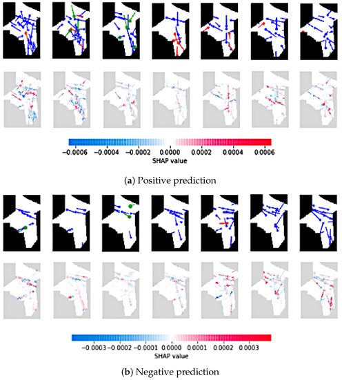 Figure 20a,b can be obtained. For this type of ANN, the SHAP analysis exhibits what elements/parts, in each input image, produce a higher activation. Therefore, it will highlight what parts of the image are more relevant when identifying regulations.
