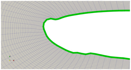 All parameters of the thin film are calculated in this selected area of the grid. This grid area can be created using two OpenFOAM utilities. First, the topoSet utility is used to extract all the cell faces of a section of the airfoil from the existing aerodynamic grid, and the extracted set of cell faces is used to extrude a new area of the grid using the extrudeToRegionMesh utility. The extrudeToRegionMeshDict dictionary sets parameters such as the set of cell faces to use, the number of layers, and the extrusion thickness.