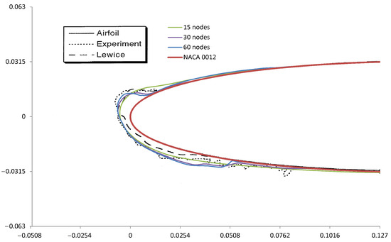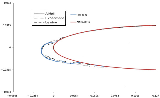 - Shin, J.; Bond, T. Experimental and computational ice shapes and resulting drag increase for a NACA 0012 airfoil. In Proceedings of the 5th Symposium on Numerical and Physical Aspects of Aerodynamic Flows, Long Beach, CA, USA, 13–16 January 1992; Available online: https://ntrs.nasa.gov/citations/19920019431 (accessed on 1 February 2022).