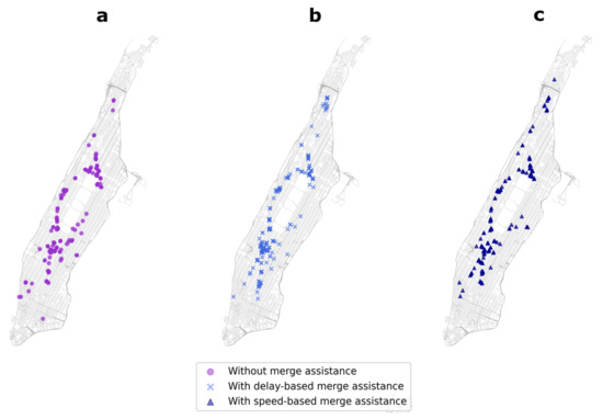 5.3. Spatial Distribution of Intrusions without and with Merge Assistance