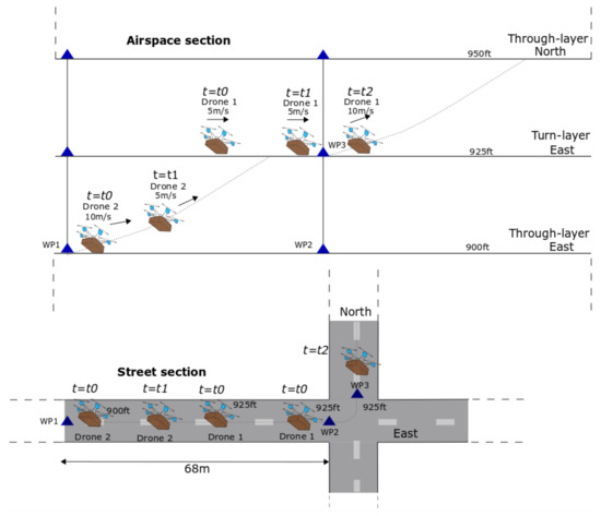 - Doole, M.; Ellerbroek, J.; Knoop, V.L.; Hoekstra, J.M. Constrained Urban Airspace Design for Large-Scale Drone-Based Delivery Traffic. Aerospace 2021, 8, 38. [Google Scholar] [CrossRef]