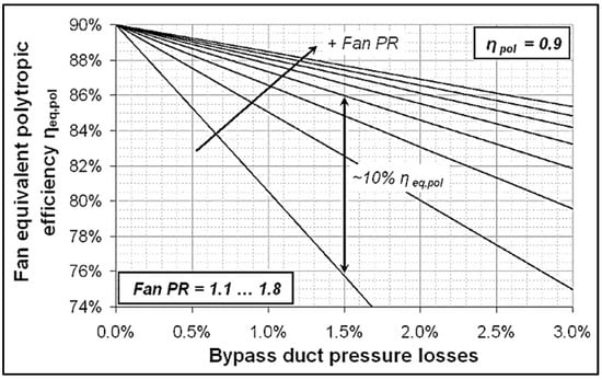 The present study has only considered the “max take-off” condition because at this stage in the flight envelope the engines are at full thrust which is when the CCA system is mostly needed. While the concept considers the option to set a mechanical valve that regulates the flow in the system so that it can be “turned off” when not needed, other engine conditions are subject to investigation at a more matured design stage. Furthermore, this study assumes a symmetric geometry and neglects any swirl reminder exiting the bypass duct OGV. However, this is not a leading order characteristic of this system and alongside other three-dimensional flow features it is subject to optimisation in a subsequent design stage. Moreover, the configuration of the return ducting downstream of the HX is not fully decided yet. For this reason, the exit pressure and the overall loss of the cooling system are unavailable. Therefore, closure of the numerical model has been achieved here by fixing the system mass flow rate to the nominal amount for the given HX (more details in Section 3).