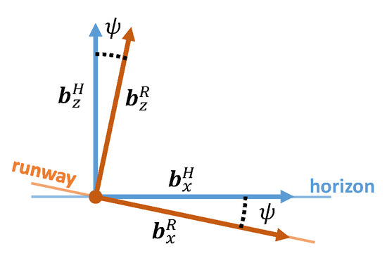 ) normal to the runway surface, pointing upward. The two frames are, therefore, made different by a non-null rotation of an angle