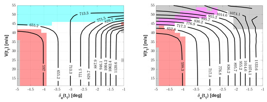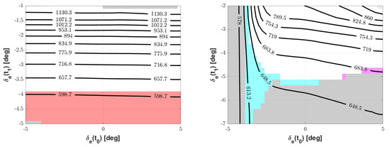 This suggests, for practical purposes, choosing a slightly sub-optimal condition, i.e., a somewhat higher and the corresponding set of five parameters. If on the one hand this would not ensure the feasibility of the globally optimal take-off maneuver, it would increase on the other the robustness of the solution, increasing the practical safety of the actual maneuver, mathematically represented in particular by a less critical compliance with respect to tail-strike and maximum pitch-rate constraints.