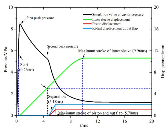 The pressure in the cavity and the motion curve of each mechanism are shown in Figure 6.