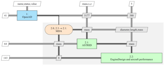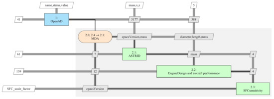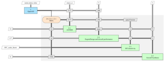 - Zill, T.; Böhnke, D.; Nagel, B. Preliminary Aircraft Design in a Collaborative Multidisciplinary Design Environment. In Proceedings of the 11th AIAA Aviation Technology, Integration and Operations Conference, Virginia Beach, VA, USA, 20–22 September 2011. [Google Scholar]