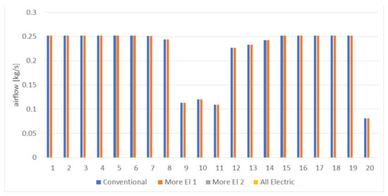 - An increase in the mass of the ECS and IPS can be noticed for the electrified architecture. This is mainly due to the use of additional components (i.e., electric motor compressors).