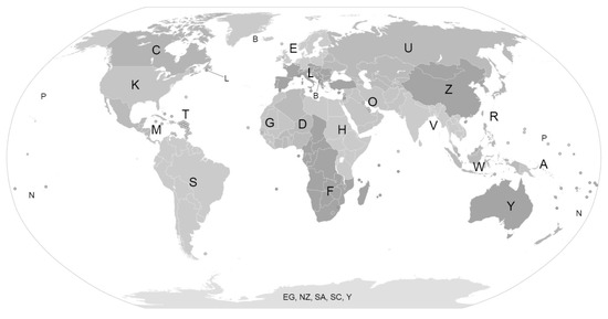 - Location Indicators (Doc 7910/148), INTERNATIONAL CIVIL AVIATION ORGANIZATION, Edition No. 148 June 2013. Available online: https://store.icao.int/en/location-indicators-doc-7910 (accessed on 1 December 2020).