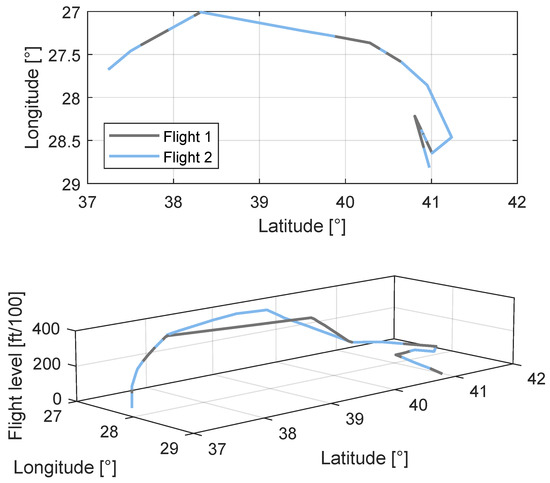 The waypoints from the flight plan, which were used to generate the flight mission profiles, were procured from the “so6” data set, provided by [11]. These data encompass all planned flights within Europe, including pairs of origin and destination, all planned waypoints and the type of aircraft.
