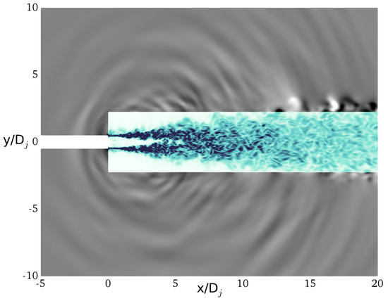 - Fleury, V.; Bailly, C.; Jondeau, E.; Michard, M.; Juvé, D. Space-Time Correlations in Two Subsonic Jets Using Dual Particle Image Velocimetry Measurments. AIAA J. 2008, 46, 281–292. [Google Scholar] [CrossRef][Green Version]