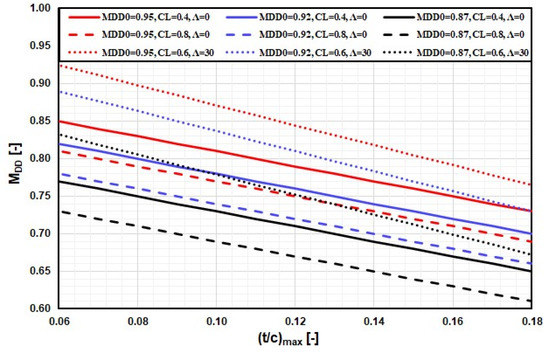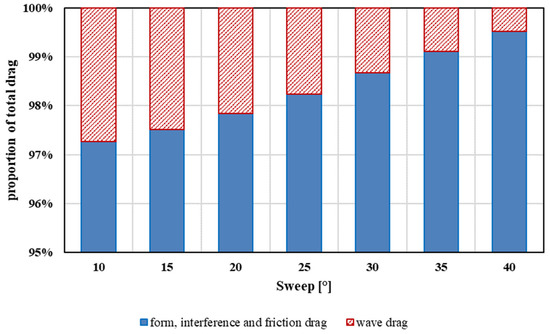 MDD increases with increasing sweep angle according to modified Korn equation). Wave drag decreases with increased sweep, a relation that is noticeable also with the drag proportions in