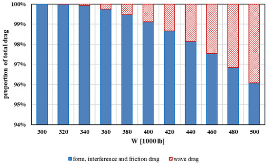 Figure 9. Even at highest weights, transonic wave drag is a very small proportion of the total drag (less than 5%).