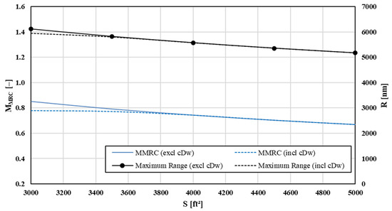 MDD). On the other hand, larger wing wetted area creates more parasitic drag so that most economic cruise airspeed essentially moves to lower speeds. Interestingly, wave drag only comes into account for smaller wing areas because for larger lifting surfaces