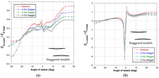 3.3.2. Contribution of the Lower Element to Total Performances of the Biplane