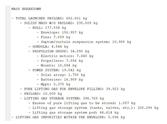 The estimation of the mass of the components of the airship can be carried out considering the following breakdown,