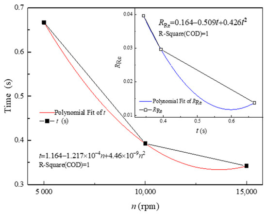 Meanwhile, time (t) and obtained at different speeds are also fitted as follows: