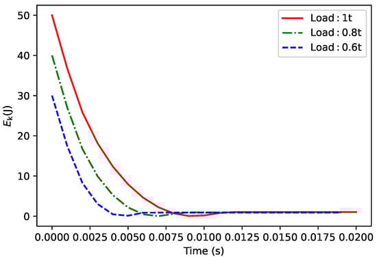 The initial speed is 1 m/s and the load is 1 t, 0.8 t and 0.6 t, respectively. Explicit dynamic analysis was carried out in ABAQUS software. The time histories of the kinetic energy of specimen are shown in Figure 4. The values of initial kinetic energy and obtained end kinetic energy are shown in Table 1. The results demonstrate that BCC4IZ can effectively absorb the impact energy under three loads.