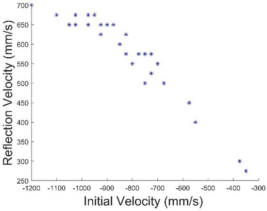 As shown in Figure 18, there is the curve between collision velocity and reflection velocity for a single suction cup in the contact collision. It can be seen that the ratio of incident velocity to reflect velocity is about 0.7, and the law is relatively linear. We use experiment data to identify system parameters in Equation (9).