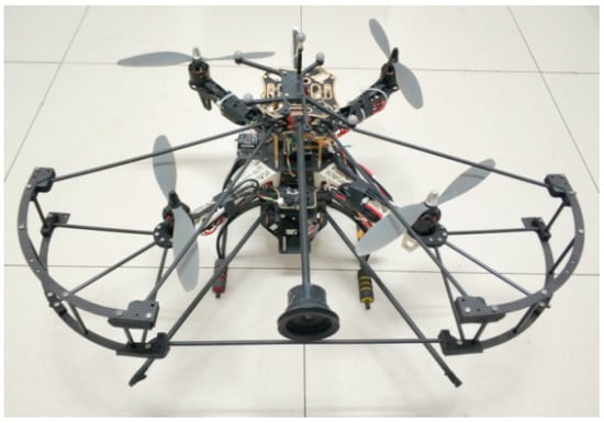 We built the experimental test platform based on the F450 frame. As shown in Figure 28, we used 60 mm-diameter suction cups, carbon-fiber tubes and carbon-fiber plates to build the protection and support stand. The APC1047 propellers and U2814 motors were used as the power system. The vacuum pump with a maximum flow rate of 3.6 L was used as the negative pressure source. The effect of collision adsorption was tested in an indoor Optitrack (Corvallis, OR, United States) motion capture environment, and the experimental results show that our robot can successfully adsorb under approach adsorption. In addition, at excessive collision velocity, the robot was able to detect whether the collision was successful and execute the adsorption failure strategy.