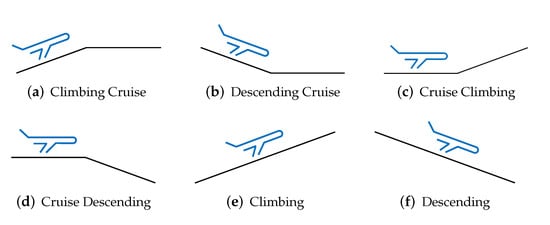 When the reference aircraft is climbing or descending, all the other aircraft in the neighborhood will be considered as neighbors. For a cruising reference aircraft, one must apply filtering to account for aircraft that are flying in the same flight level; however, an extension of this filter was necessary to account for the aircraft that were changing their altitude and then were likely to interact with other aircraft, as they would be flying at the same altitude at some point of the analysis period. The criteria applied to both the reference and neighbor aircraft to filter the possible aircraft affecting the local disorder can be observed in Figure 10.